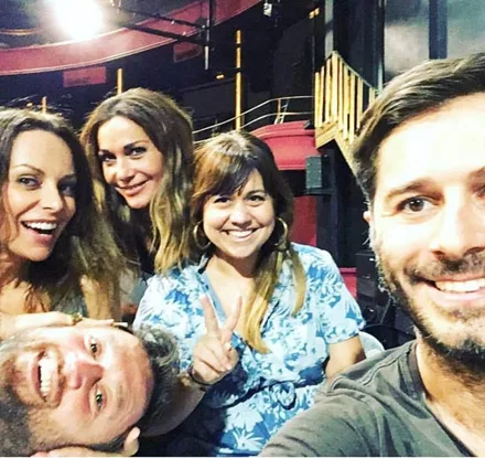 Ο Αργύρης Αγγέλου σε μία φωτογραφία με την Δέσποινα Βανδή και το υπόλοιπο καστ του μιούζικαλ Mamma Mia στις πρόβες του