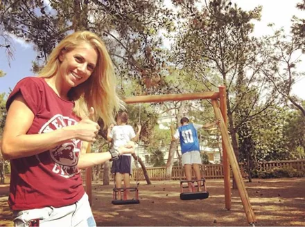 Η Ντορέττα Παπαδημητρίου απολαμβάνει μια βόλτα με τους γιούς της
