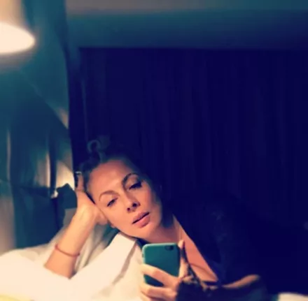 Η Σμαράγδα Καρύδη σε μια φωτογραφία από το κρεβάτι της, λίγο μελαγχολική, αφού όπως λέει φθινοπωριάζει