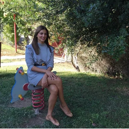 Η Σταματίνα Τσιμτσιλή ποζάρει στην παιδική χαρά
