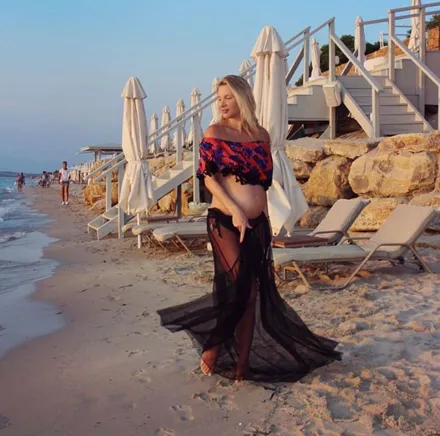 Η Χριστίνα Αλούπη ποζάρει με τη φουσκωμένη της κοιλίτσα στην παραλία