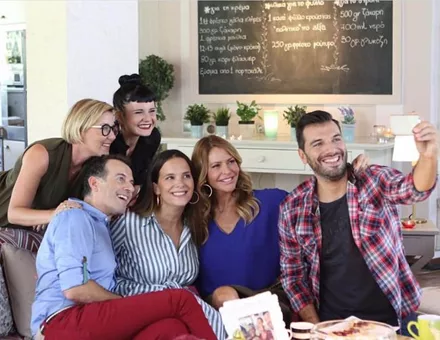 Η Τζένη Μπαλατσινού με την ομάδα της εκπομπής της