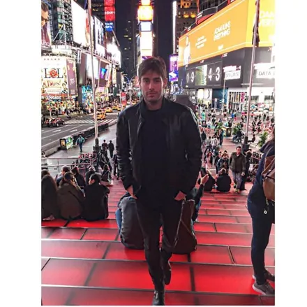 Ο Κώστας Μαρτάκης ποζάρει στην πλατεία Times Square της Νέας Υόρκης