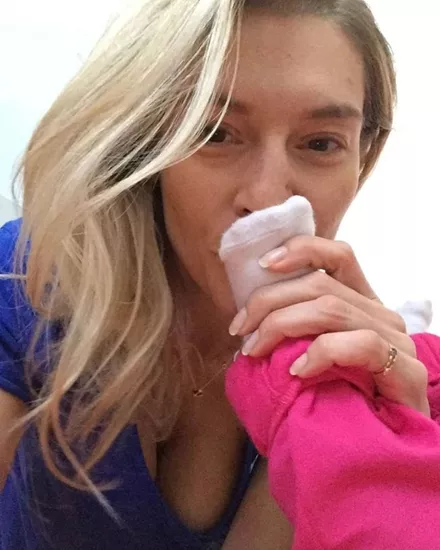 Η Δέσποινα Καμπούρη φωτογραφίζεται με τη νεογέννητη κορούλα της