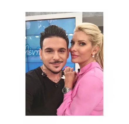 Η Ελένη Μενεγάκη ποζάρει με τον καλεσμένο της εκπομπής της, Σταν