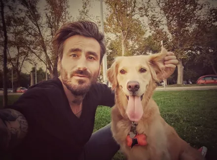 Ο Γιώργος Μαυρίδης με το σκύλο του