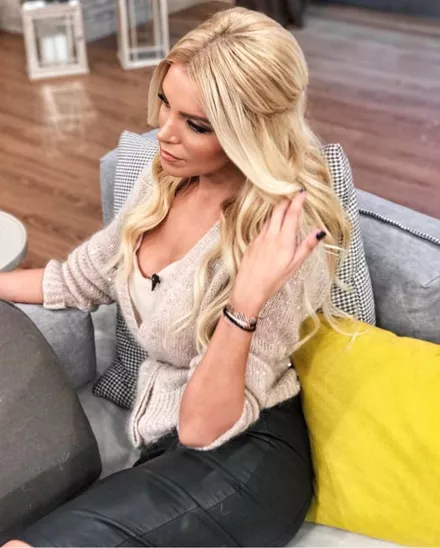 Η Κατερίνα Καινούργιου σε μία φωτογραφία από το πλατό της εκπομπής της