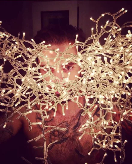 Ο Θοδωρής Μαραντίνης με τα λαμπάκια του Χριστουγεννιάτικου δέντρου