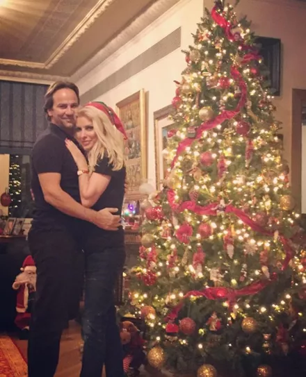 Η Ελένη Μενεγάκη με τον Μάκη Παντζόπουλο αγκαλιά δίπλα στο Χριστουγεννιάτικο δέντρο τους