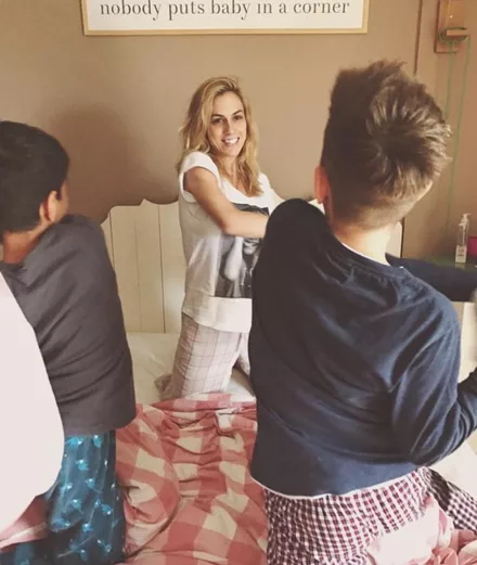 Η Ντορέττα Παπαδημητρίου παίζοντας μαξιλαροπόλεμο με τους γιους της