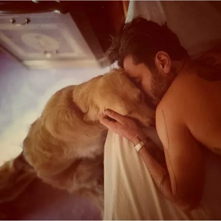 Ο Γιώργος Μαυρίδης σε μία τρυφερή φωτογραφία με το σκυλί του