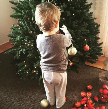 Η Σύλβια Δεληκούρα στολίζοντας το Χριστουγεννιάτικο δέντρο με τον γιο της
