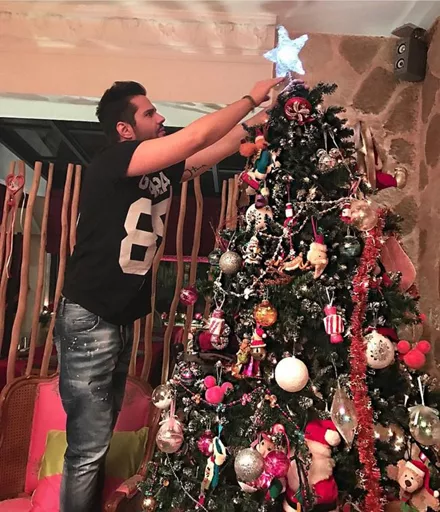 Ο Γιώργος Τσαλίκης στολίζοντας το Χριστουγεννιάτικο δέντρο