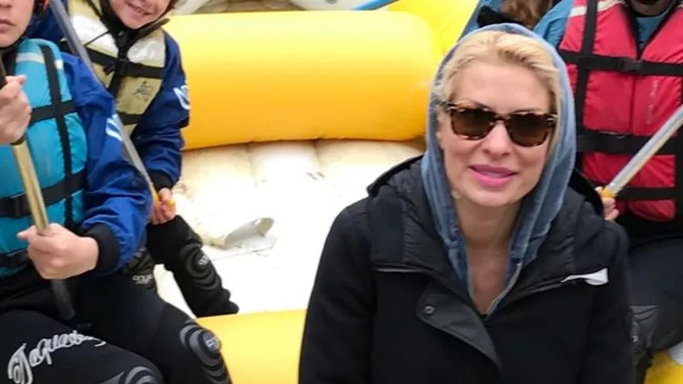 Η Ελένη Μενεγάκη σε μια αναμνηστική φωτογραφία από το rafting που έκανε με τα παιδιά της