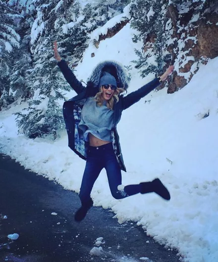 Η Ευαγγελία Αραβανή σε παιχνιδιάρικη διάθεση στο χιόνι