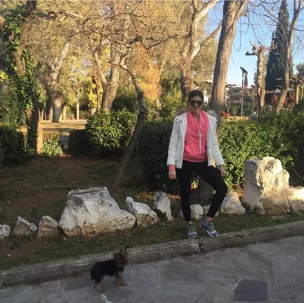 Η Σταματίνα Τσιμτσιλή γυμνάζεται βγάζοντας το σκυλάκι της βόλτα