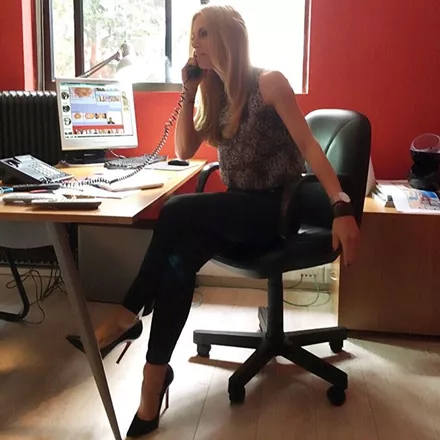 Η Ντορέττα Παπαδημητρίου στο γραφείο της στο Mega, λίγο μετά το τέλος της εκπομπής της