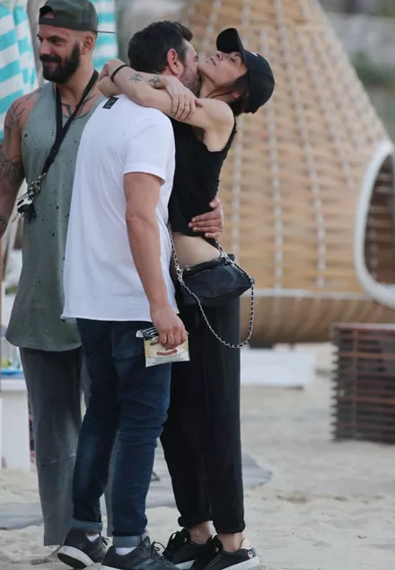 Ο φωτογραφικός φακός «τσάκωσε» το ζευγάρι που προτίμα να κρατά χαμηλούς τόνους στην προσωπική του ζωή, στην Μύκονο, να απολαμβάνει το ταξίδι στο νησί των ανέμων, ενώ δεν έλειψαν και τα παθιασμένα φιλιά.
