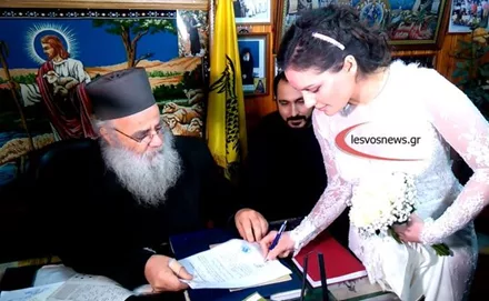 Όρκους αιώνιας αγάπης αντάλλαξε η τραγουδίστρια μαζί με τον γιατρό σύντροφό της, Γιάννη Κουτσόπουλο την Κυριακή, στο μοναστήρι του Ταξιάρχη του Μανταμάδου στο νησί της Λέσβου, σε στενό οικογενειακό περιβάλλον.