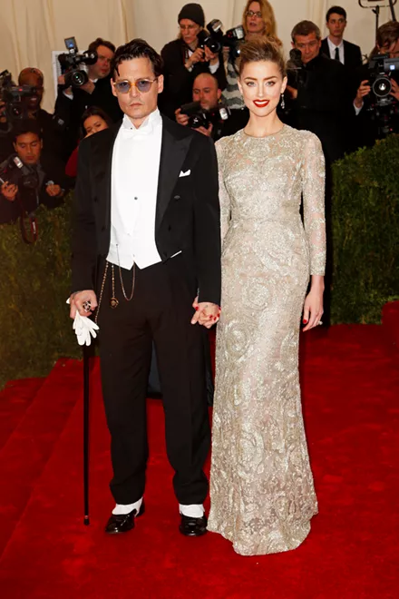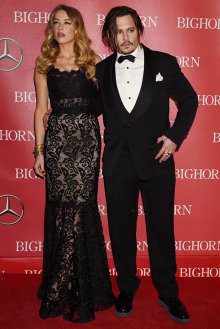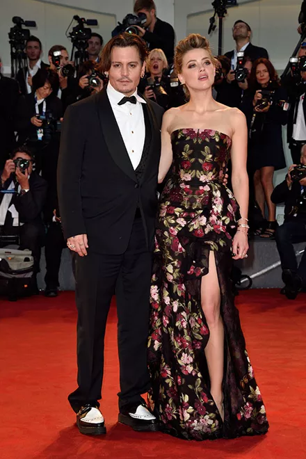 O Johnny Depp με κοστούμι Ralph Lauren Purple Label και η Amber Heard με φόρεμα Giambattista Valli.