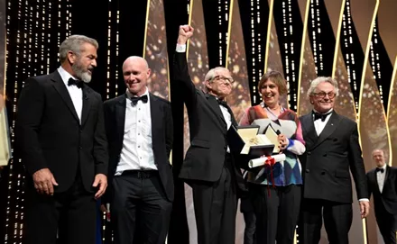 Ο εορτασμός και οι πανηγυρισμοί του Ken Loach επί σκηνής για τη μεγάλη του νίκη