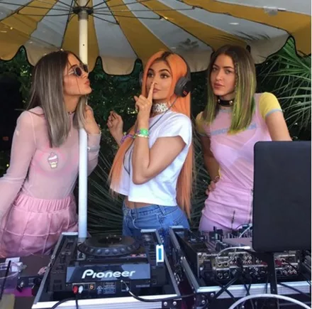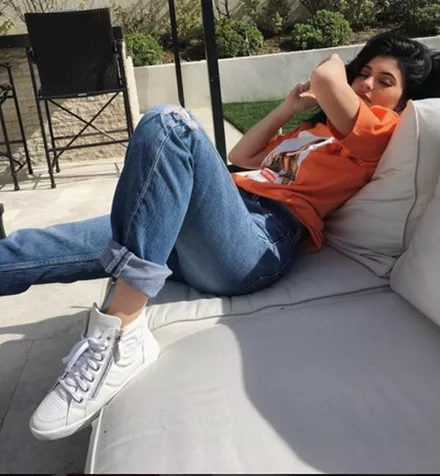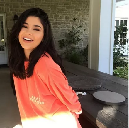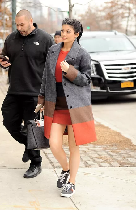Kylie Jenner looks amazing in orange arriving for Kendall's birthday party