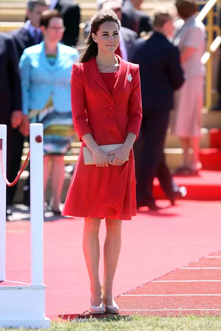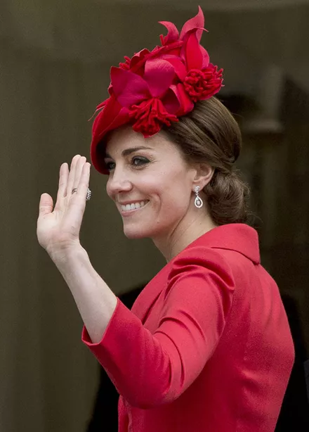 Ένα κόκκινο μαντό Catherine Walker, ασορτί γόβες και (φυσικά) καπέλο φόρεσε η δούκισσα του Cambridge που μας έχει συνηθίσει σε δεκάδες αποχρώσεις του γαλάζιου αλλά και του γκρι. Το κόκκινο, πάλι, δεν ήταν πολύ εμφανές στην γκαρνταρόμπα της εώς τώρα, αποδεικνύοντας πως και αυτό το χρώμα της πάει πολύ!