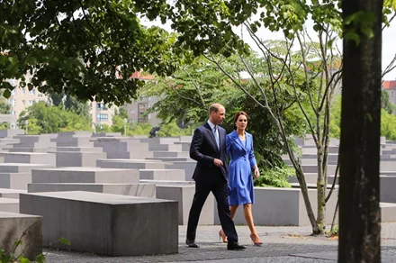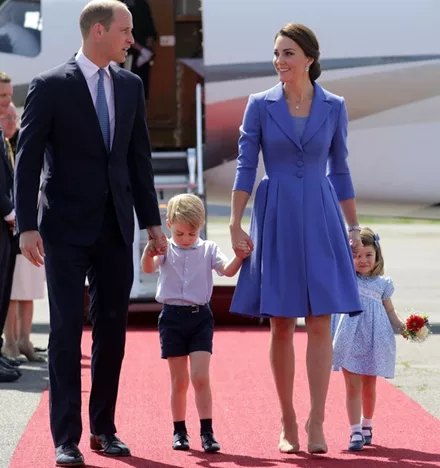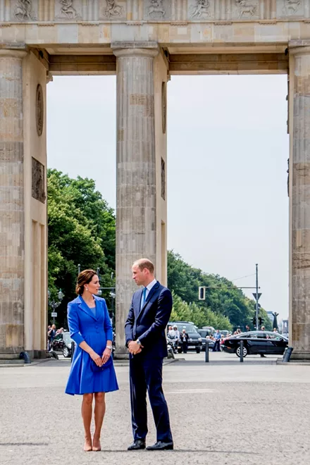 Η Δούκισσα του Cambridge επέλεξε να φορέσει ένα μπλε παλτό της Catherine Walker για την πρώτη της εμφάνιση στην Γερμανία. Το πριγκιπικό ζευγάρι επισκέφθηκαν την Καγκελάριο, Angela Merkel, αλλά και την την Πύλη του Βρανδεμβούργου, ενώ ακολούθησε μια συνάντηση με τον Πρόεδρο της Γερμανία και την σύζυγο του.