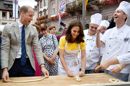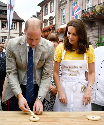 Το ζευγάρι ξεκίνησε την βόλτα του από το Κέντρο Ερευνών για τον Καρκίνο στο Heildelberg, την «αδερφική» πόλη του Cambridge. Στη συνέχεια δοκίμασαν τις μαγειρικές του ικανότητες, καθώς προσπάθησαν να φτιάξουν πρέτσελ, το γνωστό γερμανικό ψωμί.