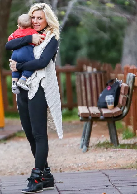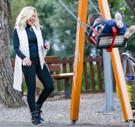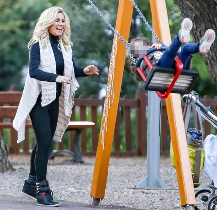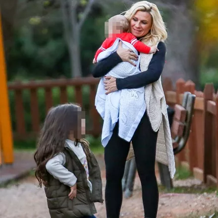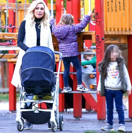 Ο φωτογραφικός φακός απαθανάτισε την Κατερίνα Καραβάτου σε παιδική χαρά των βορείων προαστίων μαζί με τα δύο της παιδιά να απολαμβάνουν ξέγνοιαστες στιγμές παιχνιδιού.