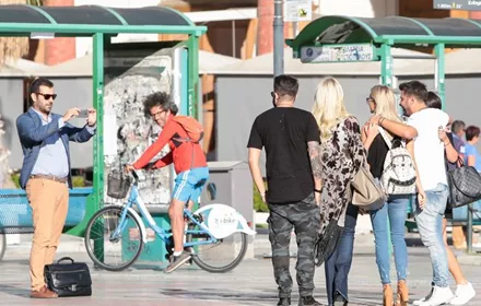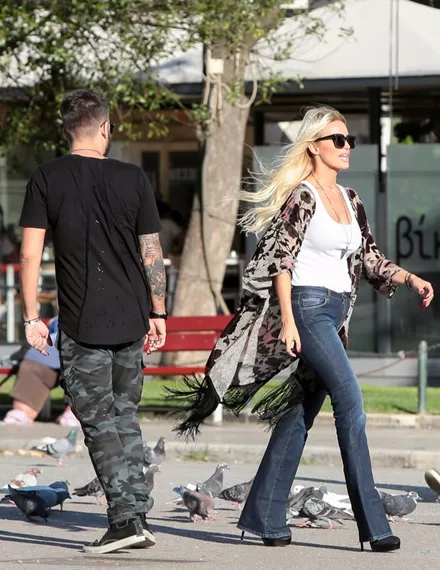 Ο φωτογραφικός φακός μάλιστα αποθανάτισε την παρουσιάστρια του Epsilon TV να απολαμβάνει τις βόλτες στο κέντρο της συμπρωτεύουσας μαζί με φίλους και συνεργάτες.