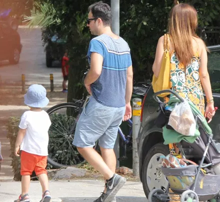 Ο φωτογραφικός φακός απαθανάτισε την Κατερίνα Παπουτσάκη μαζί με το σύντροφό της, Παναγιώτη Πιλαφά και τον 3χρονο γιο τους, Μάξιμο στον περίπατό τους στο κέντρο της Αθήνας μαζί με τους φίλους τους.