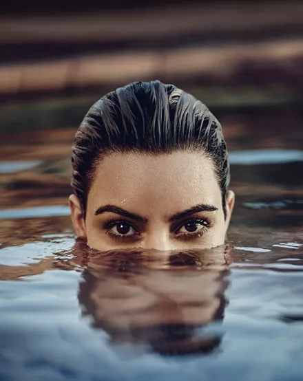 Η reality star ποζάρει τόσο με κορμάκι και τοπ του οίκου Balmain, όσο και ρούχα από τη νέα συλλογή του Kanye West, Yeezy.