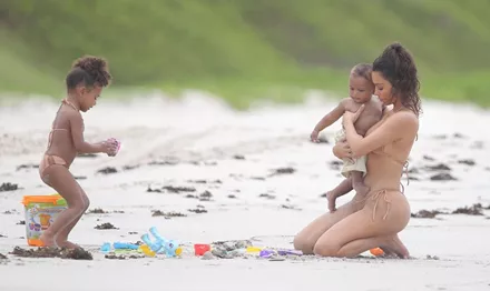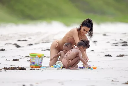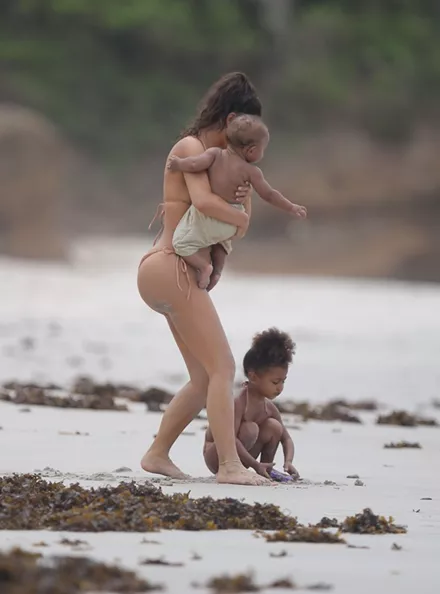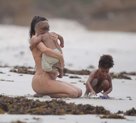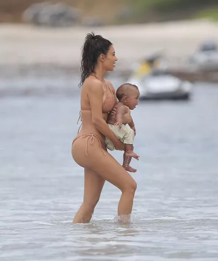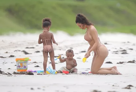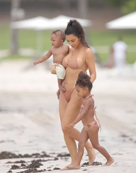 Η Kim πέρασε χρόνο με τα δυο της παιδιά, την 3 ετών Νorth και τον 8 μηνών Saint, παίζοντας μαζί τους σε μια ειδυλλιακή παραλία. Μητέρα και κόρη φορούν nude αποχρώσεις στα μαγιό τους, ενώ η ριάλιτι σταρ φαίνεται σε τέλεια φόρμα και πολύ αδυνατισμένη. Λίγους μήνες ύστερα από τη γέννηση του δεύτερου παιδιού της, το σώμα της έχει επανέλθει πλήρως.