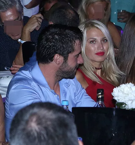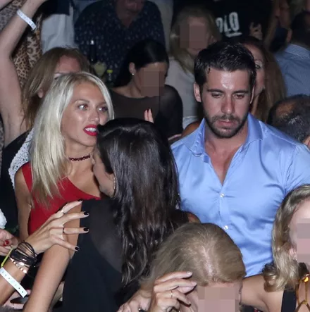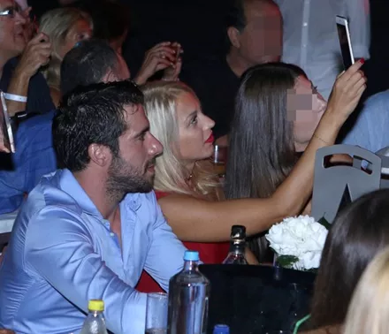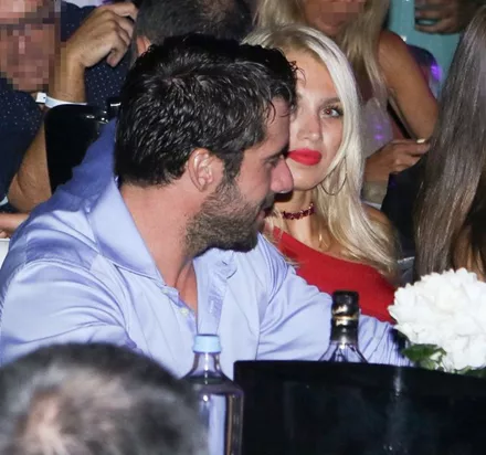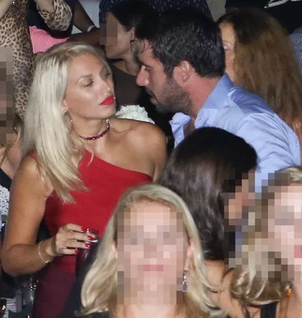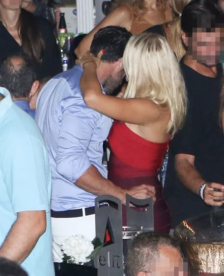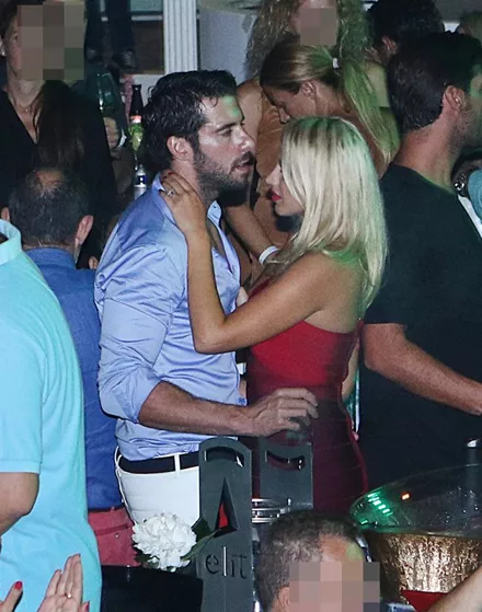 Το ζευγάρι, όπως φαίνεται και στις φωτογραφίες, αδιαφορώντας για τα αδιάκριτα βλέμματα δεν σταμάτησε να ανταλλάζει φιλιά και αγκαλιές καθ' όλη τη διάρκεια της βραδιάς.