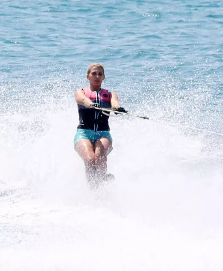 Ο φωτογραφικός φακός την τσάκωσε στην παραλία της Βουλιαγμένης, όπου η παρουσιάστρια του Alpha εμφανίστηκε με μαύρο ολόσωμο μαγιό. Όπως θα δεις παρακάτω εκτός από τον ήλιο, επέλεξε να δοκιμάσει και θαλάσσια σπορ, κάτι που αποτελεί αγαπημένη της ασχολία
