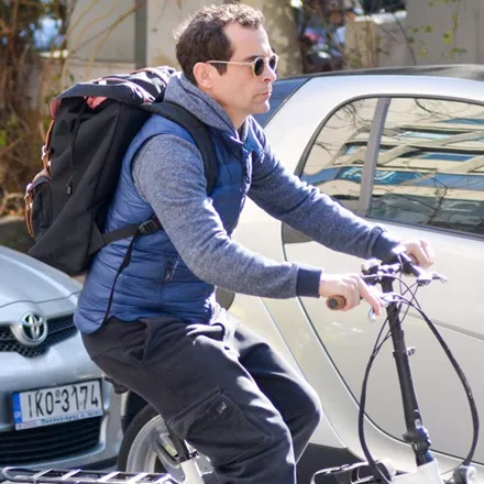 Ο ηθοποιός όπως φαίνεται και στις φωτογραφίες για τις μετακινήσεις του, επιλεγεί ως μέσο μεταφοράς του, το ποδήλατο, αφού διατηρεί έναν υγιεινό τρόπο ζωής.