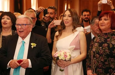 Με τα ιερά δεσμά του γάμου ενώθηκαν ο Κώστας Βουτσάς και η Αλίκη Κατσαβού, στο Δημαρχείο Αθηνών, το πρωί του Σαββάτου.
