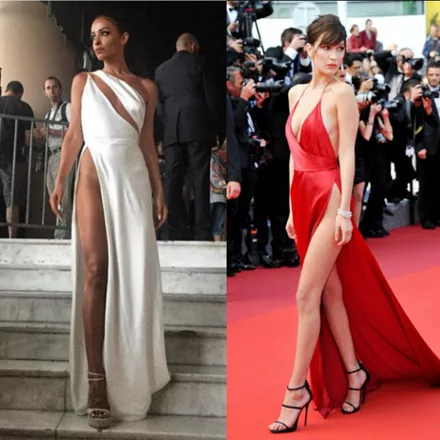 To λευκό μάξι φόρεμα που επέλεξε να φορέσει η Eλένη Φουρέιρα μας θύμισε αρκετά τη φετινή red carpet εμφάνιση της Bella Hadid στο Φεστιβάλ των Καννών