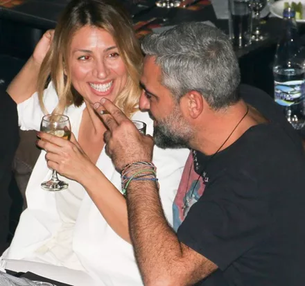Το ζευγάρι μάλιστα αδιαφορώντας για τα αδιάκριτα βλέμματα, αντάλλαζε τρυφερές αγκαλιές δείχνοντας πως ο έρωτάς τους καλά κρατεί!