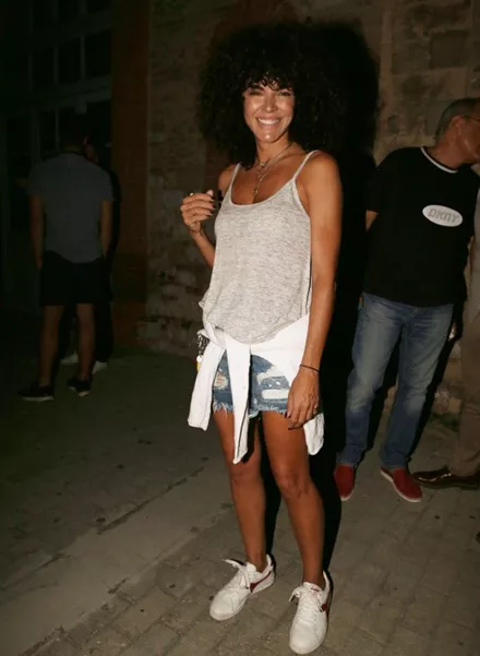 Η ηθοποιός μαγνήτισε τα βλέμματα και πόζαρε χαμογελαστή στον φακό λίγο πριν την έναρξη της συναυλίας.
