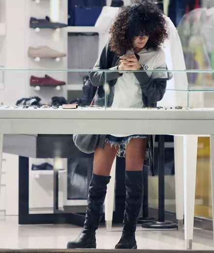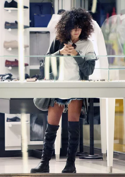 Η γνωστή ηθοποιός περιπλανήθηκε στα καταστήματα του Golden Hall, φορώντας ένα κοντό τζιν σορτσάκι συνδυάζοντάς το με λευκό t-shirt και μαύρες μπότες, ένα look το οποίο αγαπά ιδιαίτερα.