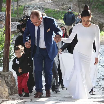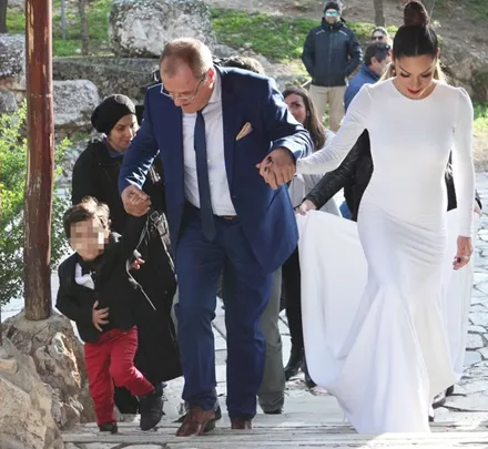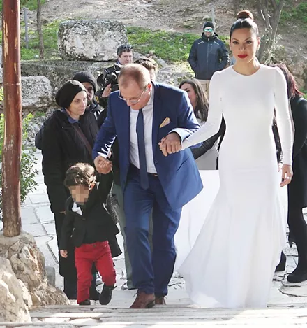 Το ζευγάρι αντάλλαξε όρκους αιώνιας αγάπης, στον Άγιο Δημήτριο Λουμπαδιάρη, στο Θησείο, με τη νύφη να καταφθάνει στην εκκλησία συνοδευομένη από τον πατερά της αλλά και τον κούκλο, 2,5 ετών γιο της, Νικόλα, που απέκτησε από τη σχέση της με το μουσικό, Νέστορα Φωτιάδη.