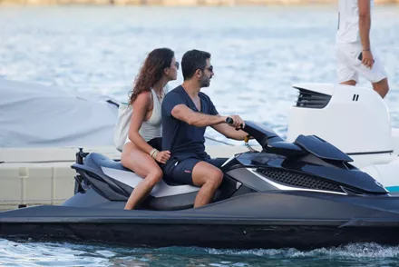 Αυτήν την περίοδο το ζευγάρι βρίσκεται στο Νησί των Ανέμων με σκάφος και απολαμβάνει στιγμές χαλάρωσης και ηρεμίας. Η Μαρίνα Βερνίκου και ο Μίλτος Καμπουρίδης απαθανατίστηκαν από το φωτογραφικό φακό σε γνωστή παραλία της Μυκόνου, λίγο πριν επιβιβαστούν σε τζετ-σκι για να φτάσουν στο σκάφος τους. Το καλλίγραμμο κορμί και το άσπρο ολόσωμο μαγιό της φωτογράφου έκλεψαν τις εντυπώσεις.