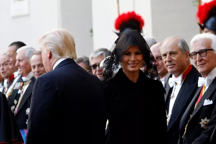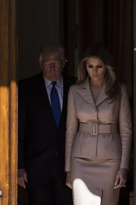 25 Μαΐου Η Melania σε γεύμα στις Βρυξέλλες, με κοστούμι του Βέλγου σχεδιαστή Maison Ullens