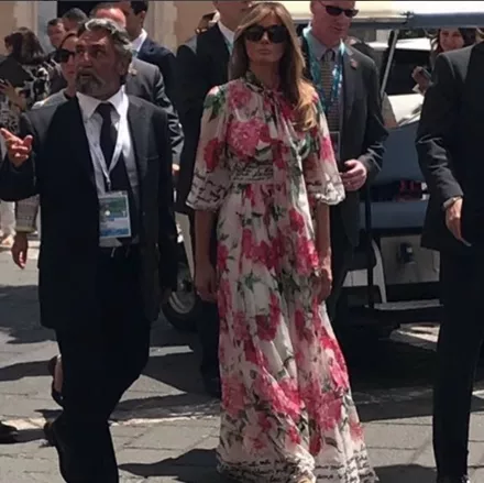23 Μαΐου Το Προεδρικό ζευγάρι κατά την άφιξή του στην Ιταλία. H Melania κατέφθασε φορώντας ένα μαύρο, δαντελένιο φόρεμα Dolce & Gabbana