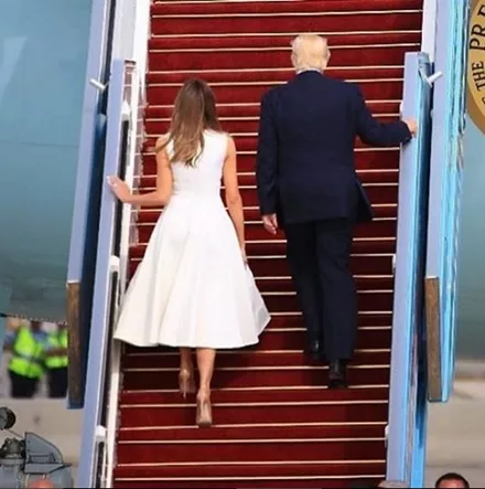 23 Μαΐου Η Melania αποχώρησε από το Ισραήλ με ρομαντικό φόρεμα Rokasanda και γόβες Manolo Blahnik