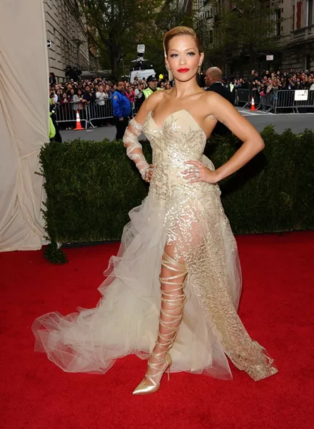 H Rita Ora επέλεξε μια εντυπωσιακή τουαλέτα Donna Karan Atelier που μάλλον θα ταίριαζε περισσότερο στο περσινό "punk" Met Gala