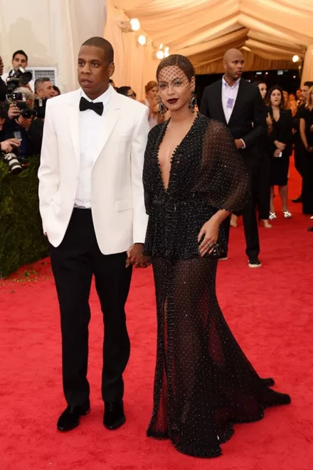 H Beyonce έφτασε φορώντας Givenchy συνοδευόμενη από τον Jay Z. H Queen B μάλιστα έχασε το Lorraine Schwartz δαχτυλίδι της αλλά το βρήκε ο σύζυγος της, ο οποίος δεν έχασε την ευκαιρία να της ξανακάνει πρόταση γάμου.