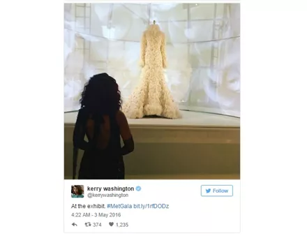 Κάτι αντίστοιχο, φυσικά δεν έλειψε και από το φετινό Met Gala, που πραγματοποιήθηκε χθες στη Νέα Υόρκη, μαγνητίζοντας τα βλέμματα και το παγκόσμιο ενδιαφέρον. Οι μεγαλύτεροι σταρς -ανάμεσα σε αυτούς η Beyonce και η Madonna- έκαναν το πέρασμά τους από το red carpet της λαμπερής βραδιάς, άλλοι singles και άλλοι όχι. Και δεν ήταν μόνο τα φλας που άστραψαν στο κόκκινο χαλί, αλλά και οι αναρτήσεις σε Instagram και Twitter που δεν σταμάτησαν... δευτερόλεπτο. Δες παρακάτω μερικές από τις αναρτήσεις των διάσημων που ξεχώρισαν.